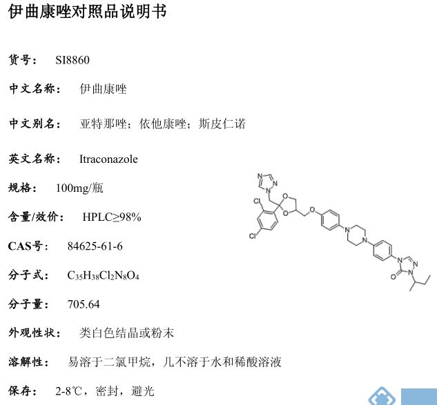 伊曲康唑标准品-常用生化试剂-试剂-生物在线